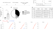 MHC tetramer staining was performed75. MHC tetramer reagents were non-covalently linked to streptavidin-PE (Invitrogen, cat#: S866) and/or streptavidin-APC (Invitrogen, cat#: S868) 1:1 mol:mol. Single-cell suspension of total PBMC/splenocytes or isolated CD8+ T cells were suspended in PBS (FCS 2% w/v, EDTA 2 mM) supplemented with dasatinib (SelleckChem, cat#: S1021) 50 nM, then incubated 30 min, 20 °C. MHC-tetramer (100 nM), and anti-mouse CD8a (2.5 × 10−4) g/L, Clone: CT-CD8a) was added then incubated, 60 min, 4 °C. The cells were then washed with PBS (FCS 2%, EDTA 2 mM) twice, then suspended in PBS (Paraformaldehyde, 1% w/v) and stored at 4 °C until use.