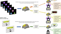 We first tested the extended models on three visual threat conditioning datasets (n = 299, n = 94, and n = 48, respectively) that differed in visual stimuli, trial structure, and experimental durations43,44,45. All models showed significant accuracies in classifying CS+ from CS- across all three independent datasets (Fig. 3B–D): the accuracies for the three datasets were: dataset 3 (TB1-TB4: 78.3%, 91.0%, 88.6%, 79.6%, all p < 0.001; two-sided binomial test, see Supplementary Table 5 for details), dataset 4 (TB1-TB4: 69.1%, 90.9%, 89.4%, 88.3%, all p < 0.001), and dataset 5 (TB1-TB4: 79.2%, 87.5%, 85.4%, 83.3%, all p < 0.001). We next tested the decoding models on a dataset (n = 68) that used an auditory threat conditioning paradigm46, which again yielded significant accuracies in 2 of the 4 models (TB1-TB4: 51.4%, p = 0.90; 83.8%, p < 0.001; 67.6%, p = 0.005; 61.7%, p = 0.068; Fig. 3E). We next applied the models to another dataset (n = 65) that assessed ‘subjective fear’22 induced by frightening images, which also revealed significant accuracies (TB1-TB4: 76.9%, 81.5%, 73.8%, 80.0%, all p < 0.001; Fig. 3F). We then tested the specificity of the models by applying them to other paradigms that tested neural responses to intrinsically salient stimuli. The accuracies of the classifiers were numerically lower when decoding neural representations about picture-evoked negative affect34 (n = 182, high vs. low emotionality, TB1-TB4: 75.3%, p < 0.001; 70.3%, p < 0.001; 72.0%, p < 0.001; 50.5%, p = 0.94; Fig. 3G). On another dataset (n = 59) that examined neural responses to pain and rejection19, most of the models showed numerically reduced accuracies for physical pain (high vs. low pain, TB1-TB4: 49.2%, p = ~1.0; 71.2%, p = 0.002; 50.8%, p = ~1.0; 57.6%, p = 0.30; Fig. 3H) or social rejection (friend vs. ex-partner, TB1-TB4: 50.8%, p = ~1.0, 61.0%, p = 0.12; 61.0%, p = 0.12; 57.6%, p = 0.30; Fig. 3I). For each trial-block, we further compared the decoding accuracies across paradigm types (see Methods). Decoding accuracies for conditioned threat (datasets 3–6) were not significantly different from those for ‘subjective fear’ (dataset 7) (Chi-square test, TB1: χ2(1) = 0.26, p = 0.81, odds ratio [OR] = 0.81, 95% confidence interval [CI] = [0.41, 1.53]; TB2: χ2(1) = 3.14, p = 0.15, OR = 1.98, 95% CI = [0.90, 4.07]; TB3: χ2(1) = 5.22, p = 0.09, OR = 2.11, 95% CI = [1.08, 3.99]; TB4: χ2(1) = ~0.0, p = ~1.0, OR = 0.95, 95% CI = [0.46, 1.85]; FDR-corrected, two-sided), and significantly higher than those for intrinsically salient stimuli (datasets 8–9) at trial-blocks 2–4 (TB1: χ2(1) = 1.05, p = 0.31, OR = 1.21, 95% CI = [0.85, 1.72]; TB2: χ2(1) = 47.49, p = 5.5E-12, OR = 3.88, 95% CI = [2.56, 5.90]; TB3: χ2(1) = 30.60, p = 3.2E-8, OR = 2.80, 95% CI = [1.91, 4.11]; TB4: χ2(1) = 55.63, p = 8.8E-14, OR = 3.46, 95% CI = [2.46, 4.90]; FDR-corrected, two-sided). These data suggest that the neural representations for conditioned threat are distinct from those evoked by intrinsically salient stimuli.
