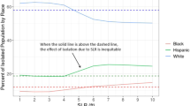 It is also possible for market forces to reverse the process of coastal gentrification. With SLR, maintaining a coast populated with high-income owner occupants and high property values is predicated on stable or rising outside markets. If these markets decline (e.g., outside property values adjust downward in response to climate risks, macroeconomic shocks, or tax reform), the result is an influx of lower income renters (Fig. 6a). Lower income residents reinforce the downward pressure on prices from SLR, raising the possibility that climate processes give rise to low-income homogeneous coastal communities. The exit of relatively high-income agents is consistent with climate gentrification in which wealthier residents relocate to less vulnerable areas, leaving less wealthy residents in climate vulnerable areas48. Our results show that the same community can experience both coastal gentrification and climate gentrification, occurring during distinct periods of time. Whether and when these phenomena occur hinges on policy interventions and the time paths of changes in the physical system and competing property markets. In the long run-whether the coastal environment becomes low-income homogeneous, is populated by wealthy owner occupants, or is something in the middle-a precipitous decline in the housing market prior to complete inundation may not be desirable. It may be possible that policies can arrest the sharpness of decline and smooth the transition toward inundation.