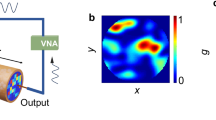 Microwave measurements of spectra of the in- and out-of-phase components of field transmission coefficients, are described in Methods and in Supplementary Fig. 1a. Spectra are obtained for two perpendicular orientations of wire antennas on the input and output of the sample on a square grid of points with use of a vector network analyser, as shown in Supplementary Fig. 1b47. The sample is composed of randomly positioned dielectric elements contained in a copper tube. Over the frequency range of the experiment of 14.70–14.94 GHz, the number of propagating modes supported by the waveguide changes from N = 61,62 to 63,64. The wave is diffusive with g ~ 6. Experimental details are given in Methods.