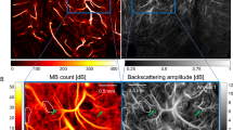 In the rat brain study (illustrated in Fig. 3), we used an injection rate of 15 \(\mu L\)/min. For the study of comparing the performance of different localization methods in different MB concentrations (illustrated in Figs. 4, 5), we varied the injection rate to 20, 30, and 40 \(\mu L\)/min with a 3-min waiting period after changing the injection rate to stabilize the systemic MB concentration. All rat brain data were acquired using a high-frequency linear array transducer (L22-14vX Verasonics Inc., Kirkland, WA) connected to a Vantage 256 system. Ultrasound data were obtained by using a 5-angle compounding plane-wave imaging sequence (step size of 1°) with a center frequency of 15.625 MHz, PRF of 28.57 kHz, and post-compounding frame rate of 1000 Hz. IQ data of 250 frames per acquisition with a total of 100 acquisitions were generated (total 100 s of acquisition). In the high-concentration rat brain study (illustrated in Supplementary Fig. 4), we used an injection rate of 90 \(\mu L\)/min. IQ data of 800 frames per acquisition were acquired per second.