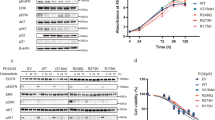 To assess whether somatic resistance mutations, such as T790M, identified from repeat biopsy of patient tumors with clinically defined acquired resistance to TKI therapy38, could explain the development of resistance in the mouse tumors, we performed whole-exome sequencing (WES, median depth of 92x, range: 58–169x) of 9 E and 10 EP erlotinib-resistant mouse tumors. There was no significant difference in the total tumor point mutational burden between the two genotypes in either the naïve or treated mouse tumor samples, or in the human TRACERx421, OncoSG, or TCGA cohorts (Supplementary Fig. 5b–e). Resistance to TKI treatment via histological transformation13 of EGFR-driven LUAD to small-cell cancer with accompanying RB1 mutations is a well-described phenomenon39. Neither Rb1 mutations nor histological transformation was observed in the analysed resistant mouse tumor samples. In E-resistant mouse tumors, we identified four EGFR bypass mutations (oncogenic Kras mutations; Q61H, Q61R, and two G12D mutations13) and one gain-of-function mutation in Fgfr2 (C382R)40 (Fig. 2f). No acquired Trp53 mutations were observed in the E cohort after treatment. In contrast, only one known resistance-associated mutation, EGFRT790M, was identified in an EP mouse tumor (Fig. 2f), suggesting that alternative mechanisms might be driving resistance in the remaining EP tumors.