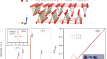 Four contacts were deposited at the four corners of the crystal, and the Montgomery method28,29,30,31 was used to get both \({\tilde{\rho }}_{aa}\) and \({\tilde{\rho }}_{cc}\) resistivities along the a and c respectively by applying a fixed current with a Keithley 2611 Sourcemeter, and measuring the voltage with a Keithley 2182a Nanovoltmeter. For each measurement, the forces Fa and Fc were changed at 375 K, and the resistances were measured during cooling down to 250 K at a fixed rate of 1.5 K/min. An electronic device allowed us to switch I+ and V− every second to get Raa and Rcc during the same temperature ramp. The ratio of transverse dimensions of the sample was obtained by fixing the anisotropy ρaa/ρcc to c2/a2 in the normal state and used to compute the resistivities normalized by sample thickness d: \({\tilde{\rho }}_{aa}={\rho }_{aa}/d\) and \({\tilde{\rho }}_{cc}={\rho }_{cc}/d\). See Supplementary Information for detailed formalism. Resistivity measurements presented in Fig. 3a–c were performed in Sample 1 after measuring the XRD data, and the ones in Fig. 3d–f in Sample 2. See Supplementary Information for complete resistivity measurements in Sample 2.