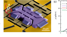 The similar field dependence of the transverse and longitudinal resistance causes a high-field saturation of the Hall angle, \(\theta={\rho }_{{xy}}/{\rho }_{{xx}}={\sigma }_{{xy}}/{\sigma }_{{xx}}\) (lower-right panel of Fig. 2c) where \({\rho }_{{xx}}\) (\({\rho }_{{xy}}\)) and \({\sigma }_{{xx}}\) \(({\sigma }_{{xy}})\) denote the longitudinal (transverse) resistivity and conductivity, respectively. By inverting the magnetoconductivity tensor, the field dependent sheet resistance may be written as:
