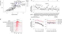We tested the effect of the P220L mutation on protein stability using a prediction pipeline tuned for transmembrane proteins21. The Rosetta physics-based score suggested that P220L is a stabilizing mutation with a ΔΔG value of −9.84 Rosetta Energy Units (REU). Using rank-normalized evolutionary-based ΔΔE scores, we calculated values of 0.0 for leucine and 0.16 for proline at this position. This combination of a higher ΔΔE value and a less negative ΔΔG value suggests that the Pro220 creates a potential loss of function protein, likely due to decreased stability and lower cellular abundance22. To test this idea, we explored the relative stability of human SLC22A10 (Pro220) and SLC22A10 (Leu220) using flow cytometry. Specifically, HEK293 Flp-In cells were stably transfected with vector control, human SLC22A10 reference (Pro220), or human SLC22A10 mutant (Leu220). In these cells, we measured both the stable level of GFP fluorescence and the response of that fluorescence to treatment with 30 nM of the 26 S proteosome inhibitor, bortezomib. For the L220 mutant, GFP fluorescence is high in comparison to the empty vector control and increases minimally upon treatment with bortezomib (Supplementary Fig. 5), suggesting that this protein is relatively stable and not actively degraded by the proteosome. In contrast, the GFP fluorescence of SLC22A10 reference (Pro220) occupies a value midway between that of the empty vector control and the SLC22A10 mutant (Leu220), confirming that it is less stable. Upon bortezomib treatment, the GFP fluorescence of SLC22A10 reference (Pro220) increases, such that it is comparable to that of SLC22A10 mutant (Leu220) (Supplementary Fig. 5). Thus, SLC22A10 (Pro220) appears to be relatively unstable and degraded by the proteosome, such that its protein levels can be partially restored by proteasome inhibition.