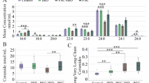 Plasma samples from the discovery inception cohort and serum samples from the validation cohort (10 µl) were randomized and extracted with a modified version of the previously published Folch procedure22. There were no samples with insufficient volume for subsequent lipidomic analysis. In short, 10 µl of 0.9% NaCl and, 120 µl of CHCl3: MeOH (2:1, v/v) containing the internal standards (c = 2.5 µg/mL) was added to each sample. The internal standard solution contained the following compounds: phosphatidylethanolamine (PE(17:0/17:0)), sphingomyelin (SM(d18:1/17:0)), ceramide (Cer(d18:1/17:0)), phosphatidylcholine (PC(17:0/17:0)), lysophosphatidylcholine (LPC(17:0)) and lysophosphatidylcholine (PC(16:0/d31/18:1)), were purchased from Avanti Polar Lipids, Inc. (Alabaster, AL, USA) and triheptadecanoylglycerol (TG(17:0/17:0/17:0)), and cholesteryl ester (CE17:0) were purchased from Larodan AB (Solna, Sweden). The calibration curve solutions contained the following compounds: LPC (18:0), cholesteryl ester (18:1, 9Z), Cer(d18:1/24:0), Cer(d18:0/18:1, 9Z), triglyceride (16:0/16:0/16:0), PC(16:0/16:0), Triglyceride (18:0/18:0/18:0), CE(18:0), LPC(18:1), LPE(18:1), (PC(16:0/18:1), Cer(d18:1)/18:1, 9Z), PC(18:0/18:0), PE(16:0/18:1), CE(18:2, 9Z, 12Z), CE(16:0), DG(18:1). The samples were vortex mixed and incubated on ice for 30 min, after which they were centrifuged (9400 × g, 3 min). 60 µl from the lower layer of each sample was then transferred to a glass vial with an insert, and 60 µl of CHCl3: MeOH (2:1, v/v) was added to each sample. Instrumental analyses were carried out on an ultra-high-performance liquid chromatography quadrupole time-of-flight mass spectrometry method (UHPLC-Q-TOF-MS) from Agilent Technologies (Santa Clara, CA, USA). The analysis was done on an ACQUITY UPLC® BEH C18 column (2.1 mm × 100 mm, particle size 1.7 µm) by Waters (Milford, USA). Mobile phases were as follows A: 10 mM NH4Ac and 0.1% formic acid in water and B: 10 mM NH4Ac and 0.1% formic acid in acetonitrile/isopropanol (1:1). Dual jet stream electrospray (dual ESI) ion source was used and with the ion polarity set to positive mode. An internal standard mixture was used for normalization and lipid-class specific calibration (0.1–10 µg/ml) was used for quantitation as previously described.