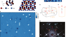 We study bulk single crystals of UTe2 with bulk superconducting TSC ≈ 1.6 K10 (Methods). We cleave the crystals in ultra-high-vacuum at liquid nitrogen temperature, and immediately insert them into the microscope head. The crystal structure of UTe2 is orthorhombic and UTe2 crystals tends to cleave along the [0 − 11] direction20. Typical STM topographs of the (0 − 11) plane show a chain-like surface, with two rows of Te atoms oriented along the [100] direction (Fig. 1a), similarly to what has been observed in other STM studies18,19,20. In addition to the atomic Bragg peaks QBragg and Te chain Bragg peaks Qchain (Fig. 1b), Fourier transforms (FTs) of differential conductance dI/dV maps show three other pairs of peaks (Fig. 1c, d). These peaks are non-dispersive with energy (Fig. 1e–g) and correspond to an emergent charge density wave (CDW) intertwined with a PDW at the same wave vectors18,19.
