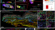 We trained a three-class classifier for Background, Tumour/Epithelium and Stroma on composite images from NSCLC tumour, tumour-adjacent lung tissue and lymph nodes using ilastik20. We selected DNA intercalators, markers with tissue-specific expression for the epithelium (pancytokeratin) and stroma (immune-specific biomarkers, ɑSMA, CD31) as input features (Supplementary Table 5, Fig. 3e). Pre- and post-processing of the images is automated without the need for manual image-specific adjustments. When available, vimentin (T cells & Stroma panel), collagen1 (T cells & Stroma panel) and panactin (Pan-Immune panel) were also included in areas with mutual exclusivity with the epithelial cell markers. The performance of this classifier was validated through pathology review of paired H&E images.