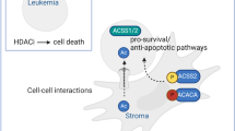 We then selected a panel of molecules with pan (AR-42, belinostat) or selective (entinostat, class 1/2) HDAC inhibitory activity based on their potential in clinical translation in high-risk-AML. AR-42 (ΔPOC = 99.54; Adj.P = 1.51 × 10−34) has been investigated in clinical trials for the treatment of hematologic malignancies (e.g. NCT01129193 and NCT02569320); belinostat (also known as PXD101, ΔPOC = 98.14; Adj.P = 1.51 × 10−34) has been approved for cutaneous of T-cell lymphoma23; and entinostat (ΔPOC = 87.43; Adj.P = 7.55 × 10−34) has been tested in myeloid malignancies, irrespective of the genetic status (e.g. NCT00313586 and NCT01159301)24. All molecules displayed half-maximal inhibitory concentrations (IC50) within the low micromolar range: AR-42 from 0.221 μM to 0.438 μM (0.329 ± 0.153), belinostat from 0.379 μM to 0.951 μM (0.665 ± 0.404), and entinostat from 0.812 μM to 1.686 μM (1.249 ± 0.618) (Fig. 2G). Treatment with HDACis also induced a dose-dependent increase in apoptosis (Fig. 2H, I and Supplementary Fig. 3E, F), and suppressed blast colony formation (Fig. 2J, K).