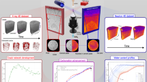 Noting the role of cement composition on carbonation potential and the movements towards using more SCMs to mitigate climate damages, the effects of different SCM types and replacement levels on carbonation must be addressed. In the most common Portland cements, a mineral composition of alite, belite, tricalcium aluminate, gypsum, and tetracalcium alumino-ferrite phases are present, with the mineral portlandite resulting from hydration of this cement being the primary compound for carbonation22. It is well established that the inclusion of SCMs to create blended cement systems can provide improvements to long-term strength and durability compared to traditional Portland cement23,24, and even increase the service life of concrete structures due to reduced chloride ingress25. However, the inclusion of SCMs also alters the pore structure and chemistry, thereby impacting the rate of carbonation. In general, it is found that increased SCM content in a cement system results in an increase in the rate of carbonation and a decreased concentration of portlandite22. SCMs that contribute to pozzolanic reactions offer a reduction in portlandite paired with increased calcium-silicate-hydrate minerals that commonly support a densification of the microstructure within concrete26. Experimental studies have shown that replacing \(\ge\) 25 % of cement with coal fly ash or blast furnace slag or \(\ge\) 10% of cement with silica fume, may decrease carbonation resistance; yet increasing curing temperature and time can increase the carbonation resistance of blended cements22. In addition to compositional shifts, there are microstructural changes that could occur during carbonation. Upon carbonation of traditional Portland cement, pore blocking by calcium carbonate, which has a larger volume than portlandite, typically results in a decrease in porosity, potentially slowing further carbonation. Although a coarsening of pore structure is common upon carbonation of blended cements, the total porosity may increase or decrease depending on the type of SCM and level of replacement22. We show the resulting life cycle CO2 emissions for cement with up to 50% replacement with SCMs to highlight a range in carbonation effects; however, we note that use of certain SCMs and certain degrees of carbonation can lead to durability issues, and application-specific performance demands must be considered in the selection of appropriate GHG emissions reduction measures. Further, we note our models do not reflect a change in portlandite availability in the hydrated paste resulting from pozzolanic reactions.