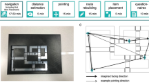 We obtained endpoint data from three studies investigating the homing task with landmarks. We selected data from five experiments differing in environmental complexity within each of the studies. These experiments involved adults performing the homing task14, comparison of the number of landmarks in the environment (Exp1a: poor vs. rich environment16), and adults performing the homing task in an environment with either proximal or distal landmarks15. The environments between the three studies differed in size, the location of targets and landmarks, and participants’ starting positions at the beginning of each trial. Landmark locations remained stable across trials, while the configuration of target location was varied across trials, leading to differently shaped three-legged outbound paths (Supplementary Fig. 1). In virtual environments, i.e., the studies of Zhao & Warren15 and Chen et al.16, participants wore a head-mounted display that considerably restricted their field of view. The tasks between the studies further differed in the disorientation procedure within the landmark condition, i.e., speed of turning, final rotation, and positional offset, as well as the waiting time at the end of the outbound path prior to the homing response. We extracted the differing task, participant, and environmental parameters from the respective papers and the accompanying trajectory data when available (also see Supplementary Table 1).