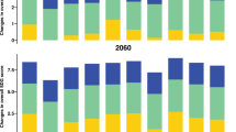 Climate change impacts, such as warming, water scarcity, and additional biodiversity loss, resulted in average reductions of 0.4 and 1.4 points in the overall SDG score compared to the Baseline scenario in 2030 and 2050 (Fig. 2). By 2050, under the climate change scenarios with the assumptions of lower energy and material efficiency, China involved a GHG emissions increase of 19.5% (SDG 13) on average compared to the Baseline scenario (Supplementary Fig. 2). In addition, slow improvements in water-use efficiency and accelerated warming contributed to a 23.2% increase in water consumption (SDG 6) (Supplementary Fig. 2), which also harmed life on land (SDG 15).