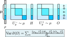 where \({{{{{{{\rm{Tr}}}}}}}}_{{{\mathbb{C}}}^{2}}\) denotes the trace over the qubit where O acts. Indeed, we have \({\mathfrak{g}}={{\mathfrak{g}}}_{1}\oplus \cdots \oplus {{\mathfrak{g}}}_{n}\) with each \({{\mathfrak{g}}}_{j}\cong {\mathfrak{su}}(2)\). Using the orthonormal basis {2−n/2Xj, 2−n/2Yj, 2−n/2Zj} of \(i{{\mathfrak{g}}}_{j}\), we find \({O}_{{{\mathfrak{g}}}_{1}}={X}_{1}\) and \({O}_{{{\mathfrak{g}}}_{j}}=0\) for 2 ≤ j≤ n, while \({\rho }_{{{\mathfrak{g}}}_{j}}={2}^{-n}{Z}_{j}\) for all j. This gives \({{{{{{\rm{Tr}}}}}}}[{O}_{{{\mathfrak{g}}}_{1}}^{2}]={2}^{n}\), \({{{{{{\rm{Tr}}}}}}}[{\rho }_{{{\mathfrak{g}}}_{1}}^{2}]={2}^{-n}\), yielding the value 1/3 on the second line of Eq. (15). The last line in Eq. (15) provides an alternative interpretation, where the observable O and state ρ are reduced on the first qubit to O1 = X and \({\rho }_{1}=\left\vert 0\right\rangle \left\langle 0\right\vert\), respectively. Note that the last line in Eq. (15) is the special case n = 1 of Eq. (14). Thus, in this specific case, the notions of generalized entanglement and generalized locality match their standard notions based on the subsystem decomposition of the Hilbert space. As such, if we measure a local operator in qubit j, the variance will depend on the purity of the reduced (input) state over qubit j.