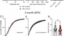 We used an electroretinogram (ERG) to measure the electrical activity of the retina in response to light. The scotopic (rod) ERG signals, both a- and b-wave, were significantly reduced in 1-month-old KO (Fig. 2a). The b-wave of the photopic (cone) ERG signal was also reduced, albeit to a lesser degree (Fig. 2b). Although there were still a few rows of photoreceptor nuclei remaining in 9-month-old KO (Fig. 1e), these mice had no detectable scotopic and photopic ERG signals (Fig. 2a, b). These results suggest that rod terminals undergo functional decline much before the eventual rod cell death in Rod∆Vps35 mice.
