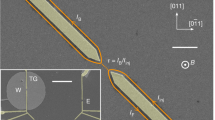 The device, shown in Fig. 1c of the Main text, is patterned in an AlGaAs/GaAs heterostructure forming a two-dimensional electron gas (2DEG) buried 95 nm below the surface. The 2DEG has a mobility of 2.5 × 106 cm2 V−1 s−1 and a density of 2.5 × 1011 cm−2. It was nanofabricated following five standard e-beam lithography steps: