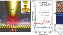 By combining ultra-narrow volume holographic grating (VHG) notch filters with nanoparticle microscopy (Fig. 1a), single-particle SERS can simultaneously detect Stokes and anti-Stokes Raman scattering down to ± 5 cm−1 Raman shifts emitted by the < 200 molecules within individual nanoparticle-on-mirror (NPoM) plasmonic nanocavities (Fig. 1b)21,22. These constructs embed a self-assembled monolayer (SAM) of molecules between a flat Au surface and a Au nanoparticle electrostatically deposited on top23. The plasmonic dimer-like cavity supports plasmonic modes with induced surface charges that couple across the SAM-defined nano-gap24, forming a hotspot with enhanced optical field \(E/{E}_{0} \sim\)300 and billion-fold amplified SERS \(\propto {{|E}/{E}_{0}{{\rm{|}}}}^{4}\). By collecting large data sets on systematically optimised systems, a statistically representative spectrum of any sample can be identified19,25.