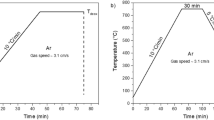 Hall measurements were performed at 300 K using the van der Pauw method, with details of the measurement described in the Supplementary Materials. The Hall coefficient (R H) was determined by the slope of hall voltage as a function of applied magnetic field, i.e. dUH/µ0dH and thus the magnitude of the Hall coefficient: R H = \(\frac{t}{I.{{{{\mathrm{\mu }}}}}_{0}}\).\(\frac{{{{\rm{d}}}}{{{{\rm{U}}}}}_{{{H}}}}{{{{\rm{dH}}}}}\), where t is the thickness of the sample and I is the excitation current51,52 as shown in Fig. S16 in the Supplementary Materials. The carrier concentration from the hall coefficient was determined to be 6.0892 × 1021 cm−3. The carrier concentration can also be calculated from a single measurement at a certain applied field, and at 9 T applied field, the carrier concentration was determined to be 6.6287 × 1021 cm−3. This data is shown in the supplementary section.