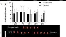 For CDT, seeds were incubated at 37oC for 28 h in water for high humidity conditions. After 28 h, seeds were surface sterilized in 12% (v/v) sodium hypochlorite solution (commercial bleach) for 15 min followed by 1 wash with 70% (v/v) ethanol, 3 washes with ddH2O, and O/N incubation at 4 oC for vernalization. Vernalized seeds were sown on ½ MS petri plates under sterile conditions and their germination rate was monitored.