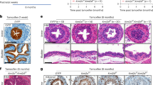 To explore the role of KMT2D in HNSCC, we first examined the genetic alterations of KMT2D in various cancer types. TCGA database analysis by TIMER2.0 revealed that KMT2D is among the most frequently mutated genes in multiple cancer types. Notably, HNSCC, including human papillomavirus positive (HPV + ) and negative (HPV-) subsets, showed a relatively high mutation frequency of KMT2D (Supplementary Fig. 1a). Consistent with this finding, TCGA database analysis from the cBioPortal indicated that KMT2D genomic alterations occur in approximately 16% of HNSCC cases (Supplementary Fig. 1b). Further analysis of these KMT2D genetic mutations in HNSCC found that the majority of mutations were truncations (60.7%), which cause loss-of-function of KMT2D (Supplementary Fig. 1c). Moreover, TCGA database analysis showed that loss-of-function mutation of KMT2D was significantly associated with poorer overall survival (OS) in HNSCC (Supplementary Fig. 1d). To investigate the role of KMT2D in HNSCC tumorigenesis, we established Kmt2d heterozygous conditional knockout mouse (K14creER;Kmt2dfl/+: Kmt2d-HT) and then treated these mice together with wildtype mice (K14creER;Kmt2d+/+: Kmt2d-WT) with 4-nitroquinoline 1-oxide (4NQO) to induce SCC in the tongue. Of note, because the pups from homozygous mating are severely runted according to The Jackson Laboratory and our pilot studies, we utilized heterozygous Kmt2d-HT mice which grow normally in our studies. 4NQO-induced mouse HNSCC model could largely simulate human HNSCC initiation, progression, and lymph node metastasis20 (Fig. 1a). Firstly, we confirmed the reduction of Kmt2d mRNA levels in the tongue epithelia of Kmt2d-HT mouse by quantitative RT-PCR (qRT-PCR) (Supplementary Fig. 1e) after tamoxifen (Tam) treatment. After being treated with drinking water containing 4NQO for 16 weeks and then with normal water for another 10 weeks, Kmt2d-HT mice had increased HNSCC lesion areas compared with Kmt2d-WT mice (Fig. 1b). Decreased KMT2D protein levels in Kmt2d-HT mice tongue tumors were confirmed by immunohistochemistry (IHC) (Fig. 1c). Histological analysis found that the numbers, areas, and invasive grades of HNSCC were significantly increased in Kmt2d-HT mice compared with Kmt2d-WT mice (Fig. 1d, e). Consistent with aggressive HNSCC formation, tongue tumors in Kmt2d-HT mice showed higher levels of the cell proliferation marker Ki-67 (Fig. 1f). As lymph node metastasis is an important prognostic factor in HNSCC, we further checked the metastatic status of cervical lymph nodes which are the most common sites of HNSCC metastasis3,21. Both the areas and numbers of metastatic lymph nodes were significantly increased in Kmt2d-HT mice compared with Kmt2d-WT mice as determined by anti-pan-cytokeratin (PCK) immunostaining (Fig. 1g, h). These results suggest that Kmt2d loss promotes HNSCC initiation and development.