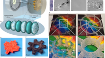 The accuracy of printing objects using HDSP depends heavily on the accuracy of projected target images, which is controlled by the accuracy of manufactured holograms. The manufacturing process of the holograms creates error on the phase plates and consequently causes distortion and unwanted regions on the desired image at the target planes. The holograms in this paper are manufactured using an SLA 3D printer with a nominal resolution of 125 μm (~λw/5, where λw is the sound wavelength in water at 2.2 MHz). We manufactured a hologram with a maple leaf as the stored image and then the surface of the printed hologram is 3D scanned with a confocal microscopy method with an accuracy of λw/8 and compared it with the theoretical hologram. The normal surface deviation between the manufactured and theoretical hologram is shown in Fig. 6a. Less than 30% of the scanned surface of the manufactured hologram has more than 150 μm deviations with respect to the theoretical hologram. Such deviation could cause image distortion and inaccuracy of the printed part. We simulated the pressure pattern at the target plane for both manufactured and theoretical holograms using linear acoustics (section “Methods”) as shown in Fig. 6b-left and right, respectively. The inaccuracies in the manufactured hologram cause an uneven pressure pattern and unwanted pressure lobes (Fig. 6b-right) in comparison with the theoretical hologram’s pressure pattern (Fig. 6b-left). Uneven pattern with unwanted high-pressure regions creates printing inaccuracies in the HDPS process. Therefore, the proper manufacturing process selection of holograms has a prime importance in HDSP to achieve accurate printed parts.