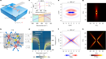 To directly visualize the evolution of polaritons, we perform direct nanoimaging of the (010) crystal surface using s-SNOM. Here, gold nanodisks with ~ 1 μm diameter are deposited to excite the polaritons at the Y2SiO5 crystal-air interface (see “Methods”). By scanning the sample surface point by point, direct nanoimaging of the surface polaritons can be obtained. It should be noticed that the p-polarized laser beam is illuminating along the x-axis defined in Fig. 2a with an incident angle relative to the surface as 30°. The real-space nanoimaging of PhPs in mode A is shown in Fig. 2c–f. Even though with a spherical edge shape where the gold antenna can support polaritons propagating along all directions, we can only observe highly directional polaritons at the crystal-air interface, unveiling the remarkably confined property and hyperbolic dispersion contours of the Y2SiO5 crystal. Accordingly, the Fourier spectrum can be calculated by applying Fourier transformation to the optical signals, further verifying the hyperbolic dispersion supporting high-k surface modes (Fig. 2g–j). With the laser frequency increasing, we can observe: (1) the open angle of the hyperbolic dispersion is decreasing, and the hyperbolic branches gradually close, which can be explained by the dispersive value of -Re(ε2)/ Re(ε1); (2) the angle between TA and the x-axis decreases gradually, mainly due to the influence of mode B and the interplay between these two RBs (see Supplementary Fig. 9).