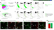 For Fig. 2a, b, Fresh-frozen brains from adult male C57BL/6NJ mice (8–12 weeks old) were sectioned at a thickness of 16 µm using a Cryostat (Leica Biosystems). Sections were collected onto Superfrost Plus glass slides (Daigger Scientific), immediately placed on dry ice and subsequently transferred to a −80 °C freezer. mRNA signal for Spp1 and Ecel1 was detected using the RNAscope fluorescent kit (Advanced Cell Diagnostics). Specifically, glass slides with sections spanning the entire anteroposterior spread of the PVT were removed from the −80 °C freezer, fixed with freshly prepared ice-chilled 4% PFA for 15 min at 4 °C and then dehydrated using a series of ethanol solutions at different concentrations (5 min each, room temperature): 1 \(\times\) 50%, 1 \(\times\) 70% and 2 \(\times\) 100%. Next, sections were treated with Protease IV (Advanced Cell Diagnostics) at room temperature for 30 min. Slides were then washed with PBS twice (1 min each) and dried for 5 min at room temperature, and sections were circled with an ImmEdge Hydrophobic Barrier PAP Pen (Vector Laboratories). Hybridization was performed on a HybEZ oven for 2 h at 40 °C using a Spp1 or Ecel1 probe (Advanced Cell Diagnostics). After this, the slides were washed twice with washing buffer (2 min each), then incubated with Hybridize Amp 1-FL for 30 min, Hybridize Amp 2-FL for 15 min, Hybridize Amp 3-FL for 30 min and Hybridize Amp 4-FL for 15 min. Next, the slides were washed twice with washing buffer (2 min each) and coverslips added using Diamond Prolong antifade mounting medium with DAPI (Thermo Fisher Scientific).