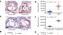 After euthanasia, hearts were perfused with phosphate-buffered saline, excised, dissected by a parallel cut under the tip of the atria, and immediately embedded in optimal cutting temperature (O.C.T.) compound and stored frozen at -80 °C. Hearts were cryosectioned (7 μm) through the aortic sinus. Cryosections spanning the entire aortic sinus were stained with oil red O (ORO), and the size of atherosclerotic lesions was measured in 7 representative sections64,65. Consecutive sections were stained with Masson’s trichrome and H&E and used to quantify lesional collagen and areas of necrosis, respectively. Additional consecutive sections were immunostained with anti-Lamp2/Mac3 (Santa Cruz Biotechnology, SC-19991 dilution 1:200 or SC-19991AF647 dilution 1:100) and with anti-COL1A1 (Sigma-Aldrich, 234167, dilution 1:50). Apoptotic cells were identified using a terminal deoxynucleotidyl transferase dUTP nick end labeling (TUNEL) assay (Roche, 12156792910) following the manufacturer’s instructions66. The intensities and/or areas of staining were determined using ImageJ (v. 1.53) and AxioVision V.4. (Carl Zeiss Microscopy) software. Lipoproteins in plasma pools of each experimental group were fractionated by fast performance liquid chromatography (FPLC) gel filtration38.