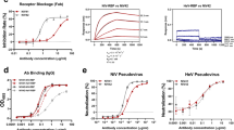 A key element in combating NiV infections is the development of NiV-neutralizing antibodies. We previously developed the monoclonal antibody (mAb) m102.4. This mAb demonstrated potent neutralization against NiV and its closely related counterpart, Hendra virus (HeV), both of which are classified within the genus Henipavirus6,7,8,9. Previous studies showed that m102.4 neutralized NiV better than HeV despite being originally selected against sGHeV10. This antibody has completed phase 1 clinical trials and has successfully been used to treat 16 individuals as an emergency postexposure therapy on a compassionate basis11. Recently, several additional NiV-neutralizing antibodies targeting different epitopes on the henipavirus G glycoprotein have also been reported12,13. However, an analysis of the locations of these epitopes revealed that certain amino acids within the epitopes are not conserved among HeV and different NiV isolates4,12,13,14 (Fig. 1a; Supplementary Fig. 1). Therefore, the identification of new NiV-neutralizing antibodies and the elucidation of their epitopes are crucial in advancing ongoing efforts to address the urgent global health challenge posed by NiV and related pathogens.