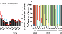 Whole-genomic sequencing of SARS-CoV-2 was performed as previously described36, 41. Briefly, cDNA was generated from extracted viral RNA by using SuperScript IV (Thermo Fisher, 18091). Multiplex PCR was performed by using different primer schemes for the following sequencing. The library was constructed with Illumina Nextera XT DNA Library Preparation Kit (Illumina, FC-131-1096) and was sequenced with PE150 (Illumina, FC-420-1003) or SE100 (Illumina, 20044338) on Illumina Miniseq. Molecular surveillance of SARS-CoV-2 was performed by Guangdong provincial CDC and 21 prefecture-level CDCs as previously described34. Briefly, once virus-positive samples were confirmed, the oropharyngeal swab samples preserved in 3 mL of viral transport medium were sent to Guangdong CDC in 24 h. Patients were informed about the surveillance before providing written consent. In total, 6183 samples were collected between 1 October 2022 and 31 July 2023 and subjected to next-generation sequencing. From this dataset, we ultimately reported 5813 high-quality genome sequences (>95% genome coverage), spanning the period from 22 October 2022, to 5 July 2023.