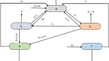 To account for individual variability in viral dynamics when determining the optimal duration of isolation, we simulated the predicted viral load, \(V(t)\), for \(N\) virtual patients by running the viral clearance model. Parameter sets for each virtual patient were sampled from distributions of estimated model parameters. The measured viral load, \(\hat{V}(t)\), was obtained from the following observation error model: \({\log }_{10}\hat{V}\left(t\right)={\log }_{10}V(t)+\varepsilon,\varepsilon \sim N(0,{\sigma }^{2})\), where \(\varepsilon\) is the error term. For each individual, the residuals were calculated at all measurement time points, and by fitting a Gaussian distribution to all computed residuals, the variance of error, \({\sigma }^{2}\), was estimated. Note that the variance for each virtual patient was assumed to be constant over time in the main analysis (i.e., constant error model). For parameter sets for virtual patients in each stratified group, we used individual parameters drawn from conditional distributions (i.e., distributions conditioned on the observed data and the estimated population parameters) characterizing the estimated parameters for individuals in each group, as estimated in the MCMC procedure. Additionally, as a sensitivity analysis, we considered a different observation error model whose variance is proportional to the predicted viral load (i.e., proportional error model): \({\log }_{10}\widehat{V}\left(t\right)={\log }_{10}V(t)+\varepsilon,\, \varepsilon \sim N(0,{\left(\eta {\log }_{10}V(t)\right)}^{2})\), where \(\eta\) is the proportional constant. The estimated parameter values in observation error models are summarized in Supplementary Table 3.
