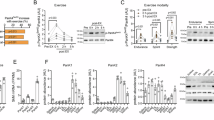 We first explored our hypothesis that PAK4 expression is altered in skeletal muscles in diabetes. Analysis of the human skeletal muscle tissue database (GSE161721) revealed that PAK4 mRNA levels were increased in patients with diabetes compared to healthy counterparts (Fig. 1a). We confirmed that the protein and mRNA levels of PAK4, as well as p-PAK4 (S474), was markedly upregulated in patients with type 2 diabetes mellitus (T2DM) compared to healthy controls (Fig. 1b, Supplementary Fig. 1a). Consistent with this, we observed markedly higher levels of PAK4 and p-PAK4 protein in the skeletal muscles of HFD-fed and db/db mice, while mRNA levels remained unchanged (Fig. 1c–e). Moreover, in line with our earlier finding that the activation of Sirt1 and protein kinase A (PKA) pathways is responsible for the protein destabilization of PAK4 in the hepatocytes and adipocytes5,6, protein levels of Sirt1 and p-PKA substrates were greatly suppressed in the skeletal muscles of diabetic mice and humans (Supplementary Fig. 1b–d).
