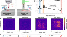 In this study, we performed a direct synthesis of SiV centers in diamond from a silicon-containing adamantane precursor (adamantylethyltrichlorosilane, AdaSi) using an HPHT approach via a laser-heated DAC23,24,25. The laser-heated DAC described in this work offers several advantages over ion implantation and CVD including the ability to map out the temperature and pressure conditions necessary for the formation of SiV from AdaSi and the ability to explore a variety of different growth and annealing conditions in the same DAC. In addition, the transparency of the diamond window allows penetration of both the continuous wave (CW) and pulsed laser for precise annealing control, and in situ measurements of the sample temperature and pressure. Pressure was calibrated at room temperature by monitoring the spectral shift of the R-line fluorescence (694.25 nm) from a ruby ball24 inside the sample chamber and Raman shift of the diamond peak at 1332 cm−1 from the diamond window. Since the DAC was under applied stress, the first-order Raman peak of diamond resulted in the blue shift of the diamond Raman peak26.