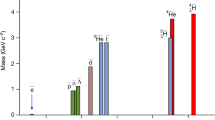 From the global fit, a prominent polarization and strong correlation of the relative phase between the two processes are observed, characterized by Py elucidating the spin transverse polarization and Cxz representing the particular relationship between \(\Delta {\Phi }_{\bar{\Lambda }{\Sigma }^{0}}\) and \(\Delta {\Phi }_{\Lambda {\bar{\Sigma }}^{0}}\). Their strong dependence on the \({\Sigma }^{0}\,({\bar{\Sigma }}^{0})\) direction angle θ, defined in the Methods, is seen in Fig. 3. To illustrate the fit quality, the fit results in each cos\({\theta }_{{\Sigma }^{0}/{\bar{\Sigma }}^{0}}\) bin are also shown using points with error bars in Fig. 3. Apart from the difference caused by the fluctuations from the complex background channels, the points of each bin are consistent with the globally fitted curves. The fit yields αJ/ψ = 0.418 ± 0.028(stat.) ± 0.014(syst.), \(\Delta {\Phi }_{\bar{\Lambda }{\Sigma }^{0}}=(1.011\pm 0.094({{\rm{stat.}}})\pm 0.010({{\rm{syst.}}}))\,{{\rm{r}}}ad\), and \(\Delta {\Phi }_{\Lambda {\bar{\Sigma }}^{0}}=(2.128\pm 0.094({{\rm{stat.}}})\pm 0.010({{\rm{syst.}}}))\,{{\rm{r}}}ad\). The ratio \(R=| \frac{{G}_{E}}{{G}_{M}}|=\frac{\sqrt{s}}{2{M}_{Y}}\sqrt{\frac{1-\alpha }{1+\alpha }}\) is determined to be 0.860 ± 0.029(stat.) ± 0.015(syst.), giving the ratio and relative phase of the electric and magnetic form factors GE and GM for \({e}^{+}{e}^{-}\to J/\psi \to \bar{\Lambda }{\Sigma }^{0}\,(\Lambda {\bar{\Sigma }}^{0})\) at \(\sqrt{s}=3.097\) GeV, with clear transverse spin polarizations of the Λ and \({\bar{\Sigma }}^{0}\) observed. The sum of these two relative phases, \(\Delta {\Phi }_{\bar{\Lambda }{\Sigma }^{0}}+\Delta {\Phi }_{\Lambda {\bar{\Sigma }}^{0}}=(3.139\pm 0.133({{\rm{stat.}}})\pm 0.014({{\rm{syst.}}}))\,{{\rm{r}}}ad\), is in good agreement with the expected value of π. \({\Delta \Phi }_{{{\rm{CP}}}}=\left\vert \pi -(\Delta {\Phi }_{\bar{\Lambda }{\Sigma }^{0}}+\Delta {\Phi }_{\Lambda {\bar{\Sigma }}^{0}})\right\vert\) is calculated to be 0.003 ± 0.133(stat.) ± 0.014(syst.), which is consistent with zero and indicates no evident direct CP violation in the decays of \(J/\psi \to \bar{\Lambda }{\Sigma }^{0}\) and \(J/\psi \to \Lambda {\bar{\Sigma }}^{0}\). This is the measurement that the time-like structure for \({e}^{+}{e}^{-}\to \bar{\Lambda }{\Sigma }^{0}+c.c.\) is extracted at \(\sqrt{s}=3.097\) GeV with high precision by using the hadronic vacuum polarization enhancement at the J/ψ. In addition, unlike e+e− annihilation into hyperon anti-hyperon pairs, Λ and \({\bar{\Sigma }}^{0}\) are not charge conjugates of each other, which enables us to explore direct CP violation by comparison of polarizations from both \({e}^{+}{e}^{-}\to J/\psi \to \Lambda {\bar{\Sigma }}^{0}\) and \({e}^{+}{e}^{-}\to J/\psi \to \bar{\Lambda }{\Sigma }^{0}\). While currently statistically limited, it provides a way to search for possible new sources of CP violation. In the future, the BESIII experiment may provide even greater sensitivity to direct CP violation30, with further improvement expected from the next generation experiments, e.g., the next-generation tau-charm physics facility31 and PANDA32.