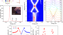 Although the total angular momentum of the ground state and excited state is the same (\({{{{\bf{J}}}}}_{{{{\bf{ZRT}}}}}{{{=}}}{{{{\bf{J}}}}}_{{{{\bf{ZRS}}}}}\, {{{\equiv }}}\, {{{{\bf{J}}}}}_{{{{\bf{0}}}}}\)), there is a distinction in the quantum numbers of spin and orbital angular momentum between the ground and excited states, as discussed in the SI Note 4. Consequently, the effective gyromagnetic ratios of the ground state and excited state are typically different, that is, \({g}_{{ZRT}} \, \ne \, {g}_{{ZRS}}\). In antiferromagnetic materials, the localized magnetic moment is represented by \({\mu }_{B}g{{{{\bf{J}}}}}_{{{{\bf{0}}}}}\) or \({-\mu }_{B}g{{{{\bf{J}}}}}_{{{{\bf{0}}}}}\), where \({\mu }_{B}\) denotes Bohr magneton. Under the external magnetic field \({{{\bf{B}}}}\), the exciton ground state energy is given by \({E}_{{ZRT}}\left({{{\bf{B}}}}\right)={E}_{{ZRT}}\left(0\right) \,\pm \, {\mu }_{B}{g}_{{ZRT}}{{{{\boldsymbol{J}}}}}_{{{{\boldsymbol{ZRT}}}}} \, {{{\cdot }}} \, {{{\bf{B}}}}\), while the corresponding exciton excited state energy is \({E}_{{ZRS}}\left({{{\bf{B}}}}\right)={E}_{{ZRS}}\left(0\right)\, \pm \, {\mu }_{B}{g}_{{ZRS}}{{{{\bf{J}}}}}_{{{{\bf{ZRS}}}}} \, {{{\cdot }}} \, {{{\bf{B}}}}\). Therefore, the peak positions of the ZRE is \({E}_{{ZRE}}\left({{{\bf{B}}}}\right)={E}_{{ZRE}}\left(0\right) \, \pm \, {\mu }_{B}\left({g}_{{ZRT}}\, {{{-}}}\, {g}_{{ZRS}}\right) {{{{\bf{J}}}}}_{{{{\bf{0}}}}} \, {{{\cdot }}} \, {{{\bf{B}}}}{{{=}}}{E}_{{ZRE}}\left(0\right) \, \pm \, {\mu }_{B}{\Delta }_{g}{{{{\bf{J}}}}}_{{{{\bf{0}}}}} \, {{{\cdot }}} \, {{{\bf{B}}}}\). In the external magnetic field, the “spin reorientation” means that the localized magnetic moment (\({\pm \mu }_{B}g{{{{\bf{J}}}}}_{{{{\bf{0}}}}}\)) rotates in the plane, leading to anisotropic and nonlinear Zeeman effects, as stated in the original version. The peak positions in Fig. 3b are extracted from PL spectra in Fig. 3a with peaks fitted by the Lorentzian function. The angles (\(\varphi -\theta\)) are extracted from the splitting energy in Fig. 3b with formula \(\varphi -\theta=\arccos \left(\frac{\Delta E\left(\theta,{{{{\rm{\mu }}}}}_{0}H\right)}{2g{{{{\rm{\mu }}}}}_{{{{\rm{B}}}}}}\right)\), whose errors include one part propagated from errors of peak positions and another part resulted from angle measurement in experiments. The fit curves in Fig. 3b and Fig. 3c are both plotted based on the following steps. Firstly, as shown in SI Fig. S11a or c, we plot the dependence of \(\varphi -\theta\) on \(\theta\) under different μ0H. The dependence is well fitted with formula \(\varphi -\theta\) = \(-\frac{1}{2}\arctan (\frac{\sin 2\theta }{\cos 2\theta -A})\) and the fitting parameter A are various in different \({{{{\rm{\mu }}}}}_{0}H\). Then, as shown in SI Fig. S11b or d, we plot the dependence of A on \({{{{\rm{\mu }}}}}_{0}H\), which is fitted with \(A=\frac{{H}_{c}^{2}}{{H}^{2}}\) and \({H}_{c}=10.75 \, {{{\rm{T}}}}\). As a result, we could plot the dependence of \(\varphi -\theta\) on \({{{{\rm{\mu }}}}}_{0}H\) for any \(\theta\). Finally, combined with the Zeeman splitting energy \(\pm g{\mu }_{B}{\mu }_{0}H\cos \varphi\), we could plot the dependence of splitting energy on μ0H for any θ. The formula \(\varphi -\theta\) \(=\frac{1}{2}\arctan \big(\frac{\sin 2\theta }{\cos 2\theta -\frac{{H}^{2}}{{H}_{c}^{2}}}\big)-\theta\), obtained from our data here, is different from Néel’s formula, while it is consistent in physics for the C2 symmetry of NiPS3. More discussions could refer to SI Note 2.