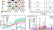 Bulk NiPS3 has a monoclinic structure with point group C2h, whereas monolayer NiPS3 has a trigonal structure with point group D3d22,23. Figure 1a indicates the crystalline axis of the honeycomb lattice structure with three-fold rotational symmetry in monolayer NiPS3. Below the Néel temperature (TN = 155 K), NiPS3 becomes an antiferromagnetic insulator10,16, in which the Néel vector is confirmed almost aligned in-plane and along the a-axis24. The interlayer coupling in NiPS3 is ferromagnetic, as shown in Fig. 1b. X-ray absorption studies suggest that NiPS3 is a charge-transfer antiferromagnetic insulator that exhibits strong spin-charge correlation effects below the Néel temperature25.