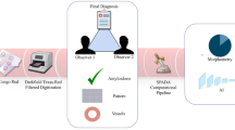 Diagnosis of amyloidosis is usually based on the demonstration of amyloid deposits in a tissue biopsy. Cardiac biopsy provides the most definitive diagnostic evidence in amyloid cardiomyopathy, and endomyocardial biopsy was shown to be a safe and relatively simple procedure9. Congo red is considered the gold standard stain used in the vast majority of histopathology laboratories to identify amyloid in tissues. When tested under cross-polarized light microscopy, Congo red-stained amyloid areas demonstrate birefringence, which is considered a specific feature of amyloidosis. However, the traditional workflow (as depicted in Fig. 1a) has several drawbacks. Congo red staining analysis exhibits inter-observer variability, partly attributed to the challenging nature of Congo red staining10. In addition to a standard brightfield microscopy evaluation, visualization under polarized light microscopy is needed to examine the presence of birefringence. The quality of the examining clinical-grade microscope for highlighting amyloid birefringence can potentially limit the accuracy of pathologist evaluations, leading to an increase in both false-negative and false-positive results11. A false negative tissue pathology report can mislead diagnosticians and lead to the exclusion of the amyloidosis diagnosis, often without reconsideration among the differential diagnoses. Recent reports showed that the median time from the symptom onset to amyloidosis diagnosis was ~2 years. Additionally, nearly a third of patients reported seeing at least 5 physicians before receiving a diagnosis of amyloidosis12.