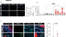 For tissue PLA, freshly cut frozen tissue sections were fixed in 4% freshly prepared PFA for 10 min at RT. Tissue sections were then permeabilized with 0.5% Triton X-100 in PBS for 15 min at RT, blocked with PLA blocking buffer in a humidified chamber at 37 °C for 2 h, and incubated overnight at 4 °C with pairs of primary antibodies as indicated in figure legends. The following day, tissue sections were washed three times with the provided buffers, and proximity ligation and probe amplification were performed following the manufacturer’s protocol. Tissue sections were additionally immunostained with A488-labeled anti-vimentin antibodies (Abcam, Cat# ab185030) and counterstained with DAPI. Details of all the different antibodies and dilutions used in PLA assays are indicated in the Supplementary Data S6.