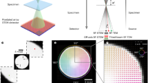 For the 4 mrad CSA and 2 µm defocus, the probe corresponded to a beam diameter on the sample of ~16 nm. A beam dwell time of 250 µs and a STEM step size of 2 nm, corresponding to 84% beam overlap for two adjacent circular probes, were used. Using a fluence of ~0.5 e−/Å2 per probe position, an average total electron fluence of ~35 e−/Å2 was applied to the sample during one scan of 128 × 128 positions. The low electron dose and parameters used in our experiments meant that on average less than 20% of the detector pixels received an electron for one probe position, making the recorded diffraction patterns very noisy.