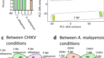 Total RNA was isolated from whole mosquito carcasses, pooled tissues, or cells using the TRIzol kit (Cat. 15596018, Invitrogen™, USA). A TIANamp Virus RNA Kit (Cat. DP315-R, TIANGEN, China) was used to extract RNA from the virus supernatant. A one-step SYBR PrimerScript reverse transcription PCR protocol (Cat. RR066A, Takara Bio Inc, Japan) on the Applied Biosystems Step-One Plus system (Applied Biosystems, USA) was applied to quantify viral and housekeeping gene RNA. The qPCR parameters were as follows: reverse transcription at 42 °C for 5 min, followed by 40 cycles of 95 °C for 5 s and 60 °C for 30 s on a Step-One Plus system (Applied Biosystems, USA). Ribosomal protein gene S7 (rps7) gene and monkey-actin were used to normalize the viral RNA load. Primers used are listed in Supplementary Data 4.