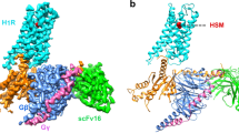 Histamine receptor-G protein complexes were co-expressed in Sf9 insect cells using the Bac-to-Bac method. Cells were infected with three types of viruses (receptor, Gα and Gβγ) at the ratio of 1:1:1 and cultured for 48 h. Cells were harvested by centrifugation and stored at −80 °C before use.