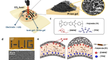 The numerical simulation was performed to analyze the temperature distribution during the ablation process using the light-absorbing heat transfer module of the commercial FEA software COMSOL. In the simulation model, a glass–graphene–PI structure was created, and the properties of each material were assigned based on the references26,38,39,40,41. In particular, the thickness of the graphene layer was set to 0.335 nm for the reduced model in Supplementary Fig. 14, and 3.35 nm for the full-scale model in Supplementary Fig. 15 due to limitations in mesh generation. Considering the thickness differences, the equivalent absorption coefficient of graphene was assigned using measured absorbance and the Beer-Lambert law. The material properties are represented in Supplementary Table 1. The irradiated laser pulse was set to a fluence of 158.4 mJ/cm2 and a duration of 14 ns, with a Gaussian profile having a standard deviation of 20 nm for the reduced model and 24.076 μm for the full-scale model.