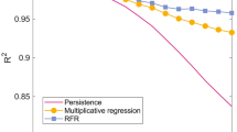 for t = 1, 2, …, T, where \({\tilde{\gamma }}_{i}\) and γi, for i = 1, 2, are regression coefficients, and the model errors \({u}_{t}^{(j)}\) follow a zero-mean error process, for j = 3, 4. For both models, the coefficients can be estimated using least-squares regression. We let \({\hat{\alpha }}_{3}\) and \({\hat{\alpha }}_{4}\) denote the least-squares estimators of α from models (3) and (4), respectively. The estimation results for the ENSO and VAI coefficients γi and \({\tilde{\gamma }}_{i}\), for i = 1, 2, are reported in Supplementary Table 2.