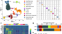 Cellranger (v3.1) was used to perform scRNA-seq data pre-processing include deduplication, aligning to the human reference genome (GRCh38), and generating a cell × gene raw count matrix composing all samples using default parameters. Raw count matrix was transformed into a Seurat object by R package Seurat (v3.2)56. Genes expressed in less than 3 cells were removed. High-quality cells were retained according to the following criteria: more than 200 expressed genes, less than 20% mitochondrial transcript, UMI number between 2000 and 25,000.