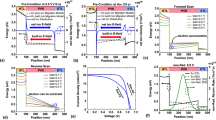 Another example that can support the explanation above is the hysteresis obtained by different pre-bias voltages. We simulated the J–V curves based on the same modeling device in Fig. 3a, but with opposite voltage scan protocol: starting from the pre-bias at 1.3 V, sweeping from 1.3 V to 0 V, then backward, named by “RF”. The results are compared with Fig. 3a and shown in Supplementary Fig. 5. Different from Fig. 4a, the pre-bias at 1.3 V drives mobile ions to accumulate near CTL and forms the E-field beneficial to the extraction, thus largely improving photocurrent approaching the reference Jsc. The distinction between the J–V curves obtained from FR and RF protocols in Supplementary Fig. 5 also indicates the role of bulk recombination in the modeled device. The theoretical results successfully explain the experimental J–V hysteresis curves reported in our previous work44, in which the main loss in the Bi-doped device is attributed to bulk recombination coupled with low mobility, but neither surface recombination nor poor contacts.