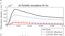 The heating process of the colloidosomes is simulated in COMSOL 5.5, Multiphysics with the colloidosomes located inside an air cylinder with radius of 2 µm and height of 4 µm embedded in a PS hemisphere with 500 µm in radius. Another hemisphere is assigned to air with the same radius. Constant temperature condition is assigned to the outer surface of the sphere. The heat capacity, mass density and thermal conductivity of gold are set to 129 J/(kg·K), 19,300 kg/m3 and 317 W/(m·K), respectively. The heat capacity, mass density and thermal conductivity of PS are set to 1300 J/(kg·K), 1050 kg/m3 and 0.033 W/(m·K), respectively. The heat capacity of air is set to 1005 J/(kg·K), and its temperature dependent mass density and thermal conductivity are taken from The Engineering Tool Box64. The absorption cross section multiplied by the laser intensity gives the total heating power. As the skin depth in gold at 530 nm was about 38 nm65 which was inferior to the size of each nanosphere (60 nm), it was reasonable to believe that only all the outermost nanoparticles work as the heating source in the experiment. As a result, the total heating power was equally distributed to all the outermost nanoparticles in each case in our heating simulations. The sweeping time step was set to 0.1 ns, in order not to lose any detail during the heating process. The simulation of colloidosomes on PS immersed in 1-butanol was simulated by simply replacing air by 1-butanol with refractive index of 1.4 used in absorption cross section simulation, and heat capacity 2330 J/(kg·K), mass density 810 kg/m3 and heat conductivity as a function of temperature66 were used in heating simulation. Domain probes were assigned to seven hcp nanoparticles on the top of the gold colloidosomes, all the heating sources (marked as Union in Fig. 3d), all the cluster, all the media (PS + air or 1-butanol) to monitor their averaged temperature evolution during the heating process. A point probe was purposely set 6 μm far away from the centered gold colloidosomes to monitor the closest neighboring gold colloidosomes heated by the centered one during single-pulse laser illumination, in order to exclude the mutual heating effect48,67. Additionally, we observe nonsense values given by this point probe with default calculation accuracy. Any negative value or temperature T at time t (t > 0) smaller than T at 0 ns should be attributed to Comsol’s calculation accuracy problem.