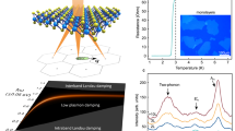 where the constant \(\Sigma \left(\bar{\rho }\right)/\bar{\rho }\) plays the role of a material dependent coupling. For a conservative estimate, we use the values reported for graphene (see e.g. Ref 98). Theory shows that the cooling power in TMDs is even higher100, such that the effective electron temperature in TMDs will be lower. We find \(\Sigma \left(\bar{\rho }\right)\approx 1\frac{{{{{\rm{mW}}}}}}{{{{{{\rm{K}}}}}}^{4}{{{{{\rm{m}}}}}}^{2}}\) for \(\bar{\rho }\approx 1{0}^{11}{{{{{\rm{cm}}}}}}^{-2}-1{0}^{12}{{{{{\rm{cm}}}}}}^{-2}\), Tph = 4.2 K. A detailed estimation of the rates of photon absorption (see Supplementary Information) gives a heating power of Pdrive = 2.7 ⋅ 106 eV/s, for the driving strength required to reach the instability threshold (see Discussion section). Equating Pcool = Pdrive, we find an effective electron temperature of Te ≈ 20 K. This is well below the typical temperatures in plasmonics experiments79. Moreover, due to the nonlinear dependence of the cooling power Pcool on the electron temperature, increasing the driving power by three orders of magnitude would result in an effective electron temperature of only Te ≈ 100 K.