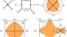 with \({{{\mathcal{C}}}}_{{{\bf{i}}}{{{\boldsymbol{\delta }}}}_{l}}={c}_{{{\bf{i}}}\uparrow }{c}_{{{\bf{i}}}+{{{\boldsymbol{\delta }}}}_{l}\downarrow }-{c}_{{{\bf{i}}}\downarrow }{c}_{{{\bf{i}}}+{{{\boldsymbol{\delta }}}}_{l}\uparrow }\) denoting the operator for the Cooper pair on the sites i and i + δl, and fα(δl) stands for the form factor of pairing function. The vectors δl (l = 1, 2, 3, 4) denote the nearest-neighbor connections, and δl is \(\pm \hat{x}\) and \(\pm \hat{y}\). Considering the structure of the square lattice, the possible singlet pairing forms are given by either the extended s-wave or the d-wave, which have the following form factor33,47,
