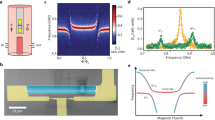 We identify the peak at 1.466 GHz as the mechanical resonance on two grounds. First, Snn follows the dependence on \({\Omega }_{{{{\rm{R}}}}}^{{{{\rm{eff}}}}}\) as predicted by the simulations. Second, the frequency at the peak, 1.466 GHz, lies very close to the mechanical resonance frequency obtained from finite-element simulations, 1.496 GHz. Thus, the coupled hybrid system is in the resolved-sideband regime with Ωm ≈ 11ΓR but more importantly Ωm ≈ 2.7Γinh.