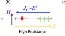 Thermal stability is a paramount in MRAM applications, particularly when utilizing a 3-nm-thick FeNi layer as the recording medium. In the context of current-induced SOT-driven magnetization switching, Joule heating generated by the pulse current poses an additional thermal challenge, beyond the usual environmental thermal fluctuations. The pulse width (tpulse) plays a pivotal role in determining the extent of Joule heating and, subsequently, influences the critical switching current density (\(\,{J}_{{{\rm{p}}}}^{{{\rm{c}}}}\))53. The relationship between \({{J}}_{{{\rm{p}}}}^{{{\rm{c}}}}\) and tpulse is expressed as \({J}_{{{\rm{p}}}}^{{{\rm{c}}}}={J}_{{{\rm{p}}}}^{{{\rm{c}}}0}\left[1-\frac{1}{\triangle }{\mathrm{ln}}\left(\frac{{t}_{{{\rm{pulse}}}}}{{\tau }_{0}}\right)\right]\), where \({{J}}_{{{\rm{p}}}}^{{{\rm{c}}}0}\) represents the zero-thermal critical switching current density, ∆ ≡ U/kBT is the thermal stability factor (with U being the energy barrier and kB being the Boltzmann constant), and τ0 ≈ 1 ns represents the inverse of the attempt frequency associated with the nanomagnet. Fig. 4d illustrates the dependence of \({{J}}_{{{\rm{p}}}}^{{{\rm{c}}}}\) on tpulse. Through linear fitting, we determined that ∆ is around 31.2. This value indicates a retention time of over 7 years for a single bit54, highlighting the robust thermal stability achieved in our design. It should be noted that the conclusion is only valid to our large device since the device thickness and volume play key roles considering the relative weak anisotropy constant of our FeNi films.