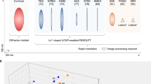 As a characteristic of SF, oscillatory SF termed as Burnham-Chiao ringing is expected in the decay curve at the condition of a large active volume (V > λ3)38,39. Burnham-Chiao ringing is based on the reabsorption/emission of the sample and reflects the coherent Rabi-type interaction between the propagating SF pulse and the sample36. According to Arecchi-Courtens limit38, there is a maximum cooperation number Nc in the large sample case. The number Nc determines the emitting sample length, beyond which specific propagation effect plays a major role40. To obtain the oscillation information and validate the UC-SF of Nd3+, we increased the emitting sample length (Lem) of the system by modulating the diameter of the excitation spot. The emission at the excitation spot diameter of 56.3 μm displayed a single-pulse decay with a fitted lifetime of 2.6 ns (Fig. 4a), indicative of pure UC-SF of the system. As the excitation spot increased to 105.7 and 163.0 μm, the effective emitting sample length increased accordingly, and the emission turned into a bi-exponential decay consisting of a fast component of single-pulse UC-SF (2.6 ns) and a slow component (>120 ns) originating from the propagation effect (Fig. 4b, c). This suggests that the emission of Nd3+ changed from pure UC-SF to the oscillatory regime by increasing the emitting sample length, wherein the oscillatory signal was evidently enhanced upon increasing the excitation power (Fig. 4d–g). Such excitation power dependence of oscillatory SF was also observed in other SF medium such as perovskite nanocrystal superlattices and hybrid perovskite films24,39. Specifically, through synergistic modulation of the excitation power and spot diameter, two periodical oscillatory peaks can be explicitly observed after the main UC-SF decay of Nd3+ (Fig. 4h), with a time interval of ~40 ns. These results provide solid evidence for the ultrafast UC-SF of Nd3+ with tunable lifetimes in either small or large active volumes of the Nd3+-concentrated system. The ultrafast UC-SF with a decay time on the ns scale provide an ideal solution to suppress the tailing effect associated with the μs−ms long lifetime of Ln3+ during the fast-scanning imaging (Supplementary Fig. 17), which is highly desirable for high-speed super-resolution bioimaging.